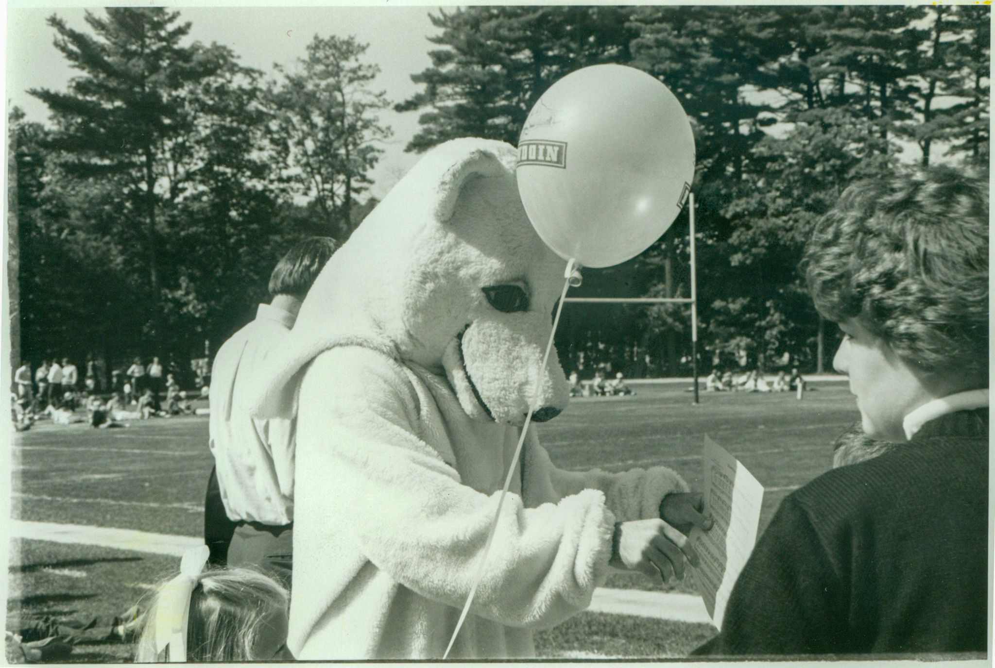 The polar bear has a rich history at Bowdoin, from its adoption as the College’s official mascot to the various styles and uses of the costume. It remains a symbol of the College, as well as a point of pride. Every time you say the phrase “Go UBears!” or see the mascot at a college event, it’s the continuation of the College’s spirited history.