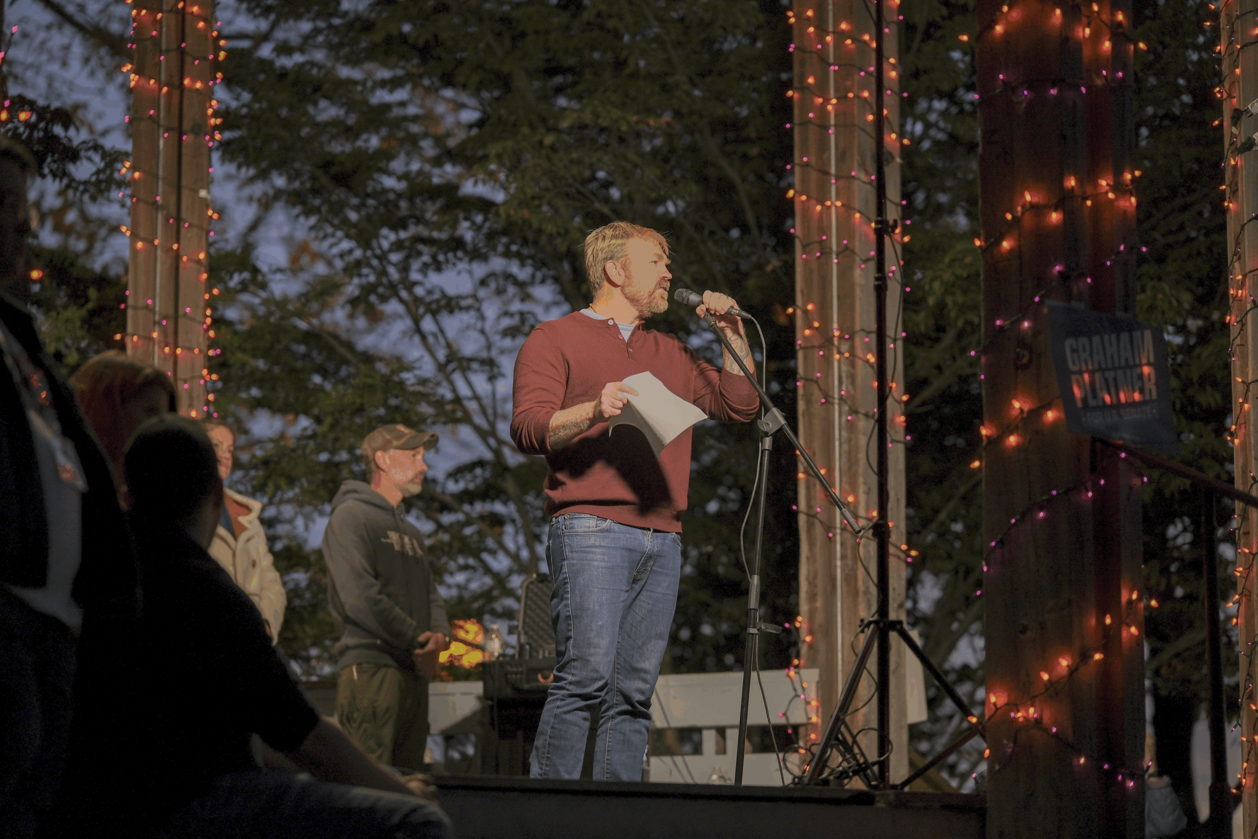 Democratic United States Senate candidate for Maine Graham Platner held a talk on Brunswick’s Town Mall this Thursday, his fourth town hall in a series he is organizing across the state of Maine.