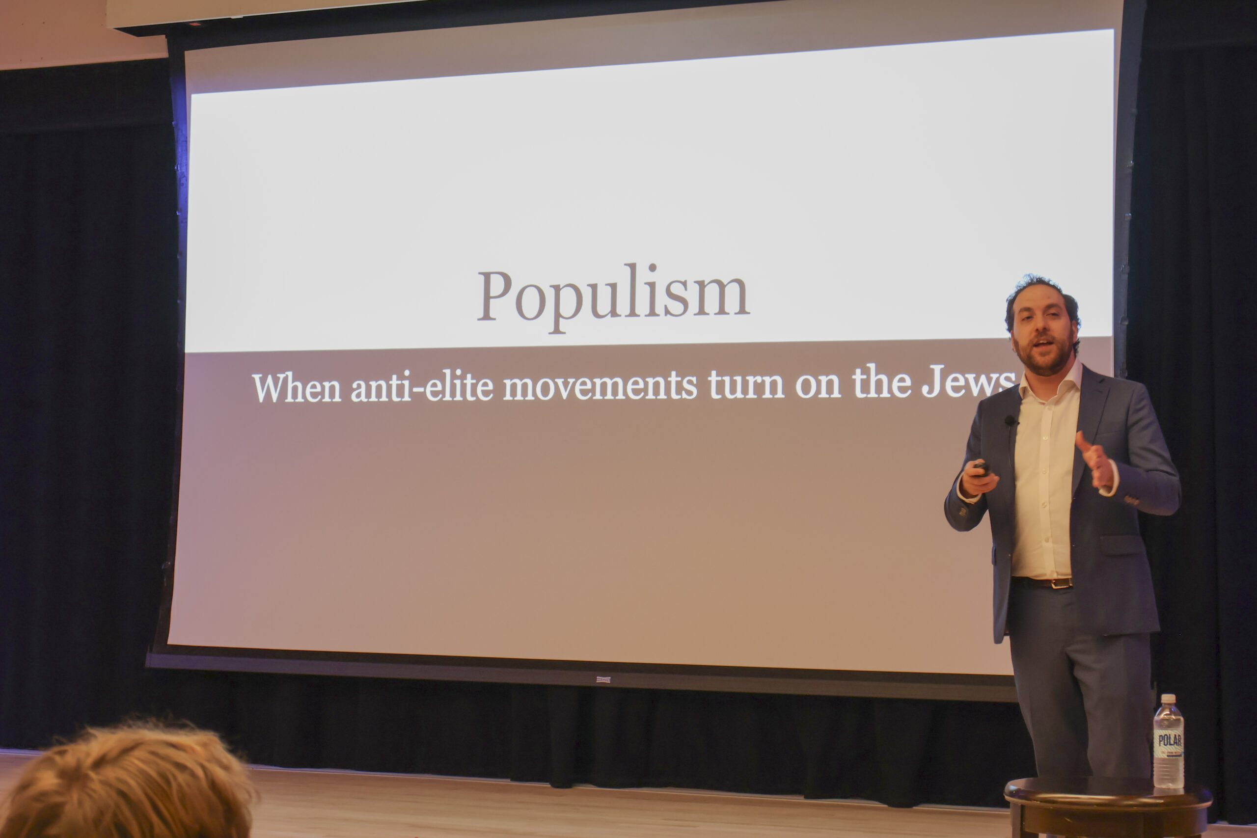 In his talk, Rosenberg outlined what he views as the reasons behind the rising tides of antisemitism.