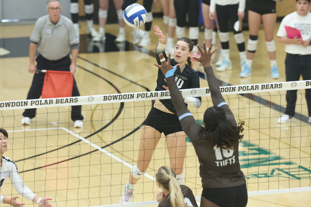 Courtesy of Brian BeardFinishing the regular season on a high, the volleyball team (14–9; 6–4 NESCAC) beat both Connecticut College (Conn.) (12–10; 3–7 NESCAC) and Trinity College (12-11; 2-8 NESCAC) in straight sets. The wins were crucial in setting up the seeding for the NESCAC tournament, in which the team earned the fifth seed.