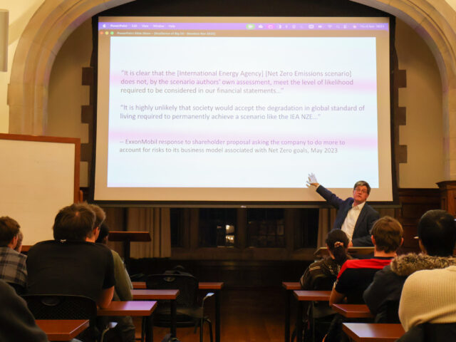 Bowdoin Votes, the McKeen Center for the Common Good’s non-partisan voter turnout initiative, tabled to help students register to vote and drove voters from campus to the polls on election day. Program Coordinator Ellen Salovaara ’26 noted that though the group had a smaller staff due to the off-year election, turnout was still strong.