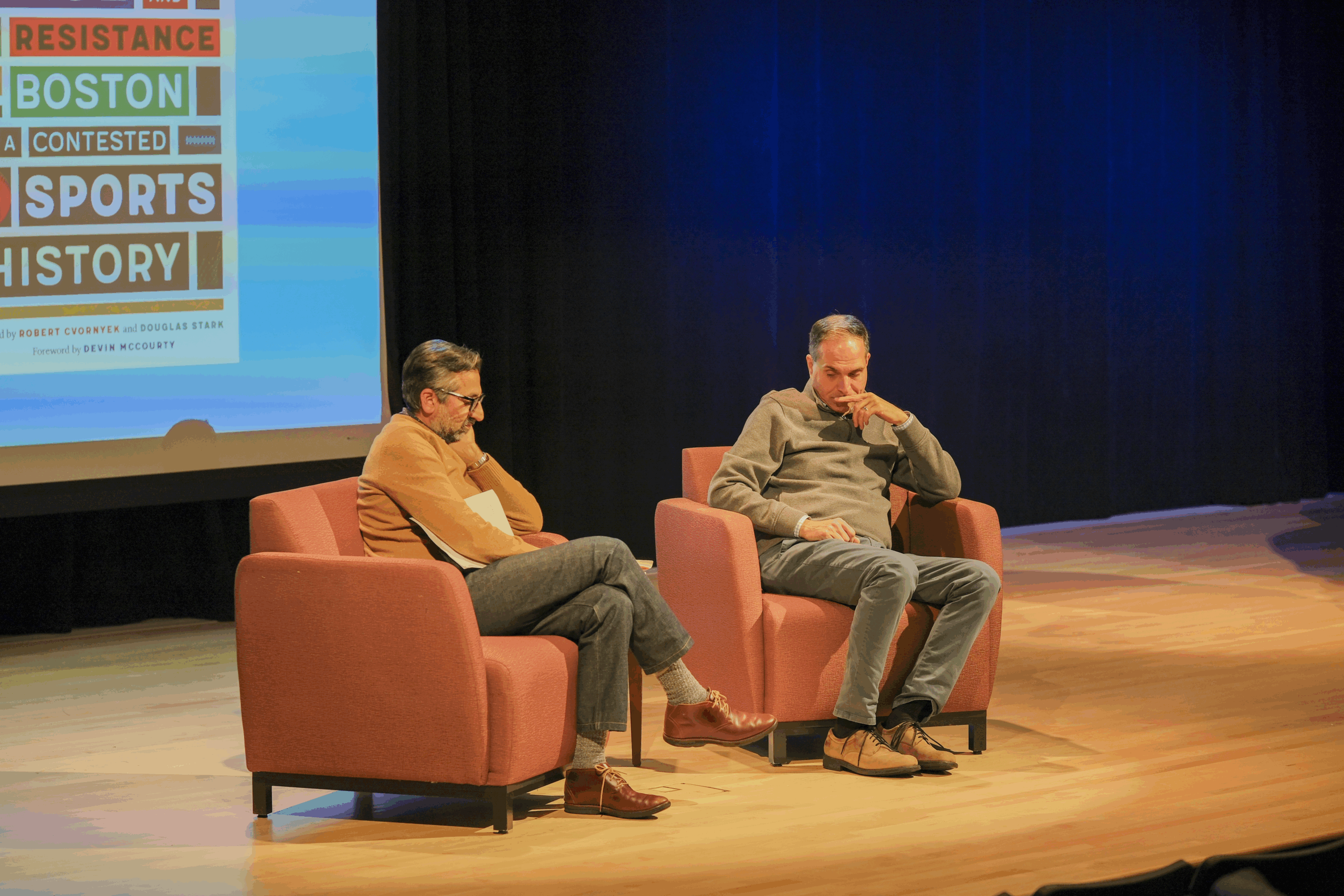 Isa CruzOn Tuesday evening in Kresge Auditorium, sports historian Doug Stark spoke to an audience of student-athletes and community members alike in a talk centered around race and sports in Boston. After a brief presentation introducing Black Bostonian athletes of the past, from Lou Montgomery to Louise Stokes, Stark took questions from Assistant Professor of English Zahir Janmohamed, who is currently teaching a first-year writing seminar titled “The Art of Sports Writing.”