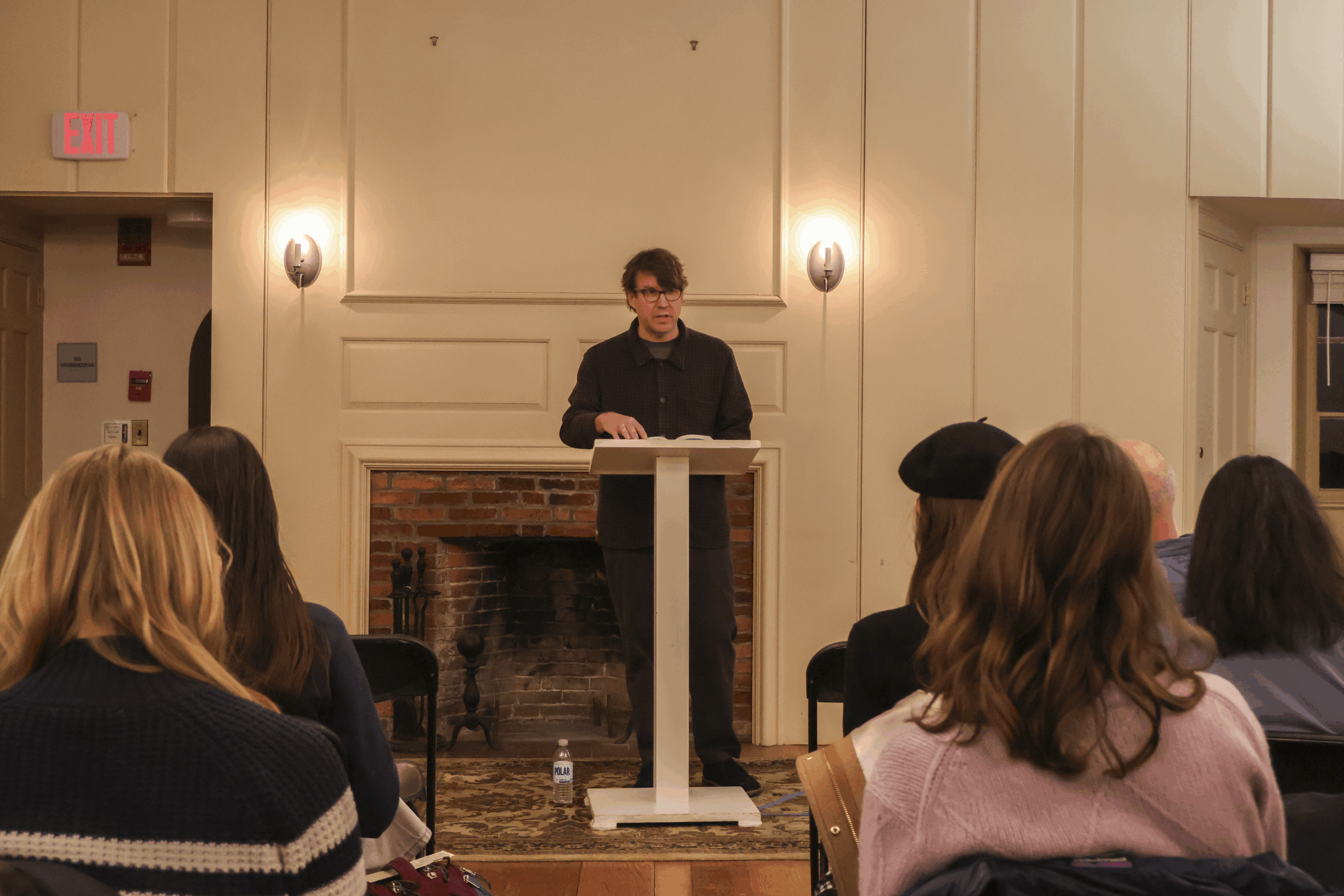 Abigail HebertOn Wednesday, students, faculty and community members gathered in Massachusetts Hall for a reading with author Kevin Moffett. Moffett is an assistant professor of creative writing at the University of Virginia. The visit was organized by Professor of English Brock Clarke and was funded by the Alpha Delta Phi Literary Society.