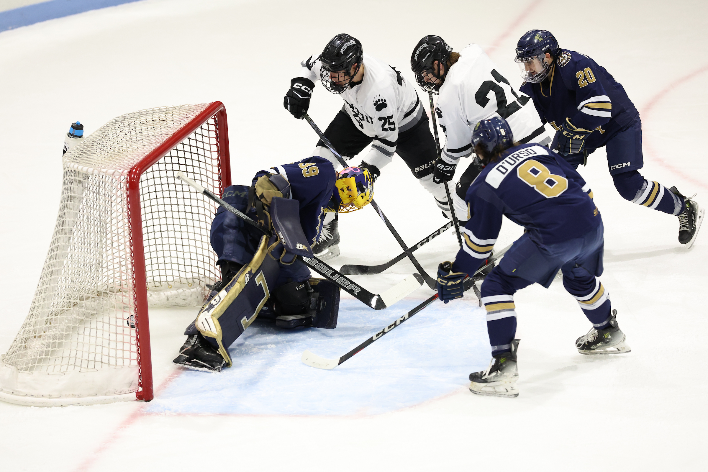 The next day, the team returned for the championship game against UNE. While the Polar Bears found the back of the net first, UNE responded by scoring two goals in 17 seconds for a 2–3 lead in the second period. However, the Polar Bears fought back, scoring in the last two minutes of the second period and finding two more goals in the first four minutes of the third to firmly take the lead. This was the first time the Polar Bears beat the Nor’Easters since 2016.