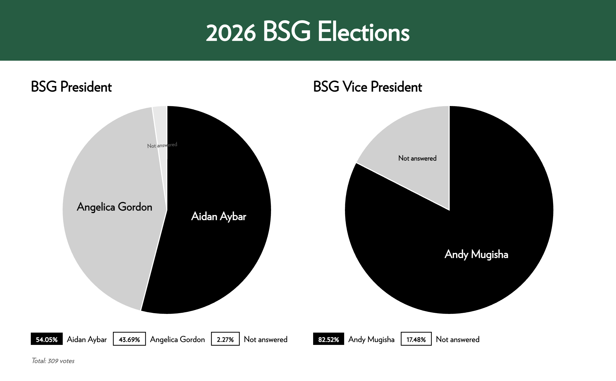 Aybar ’28 and Mugisha ’28 win BSG presidency and vice presidency in low-turnout election