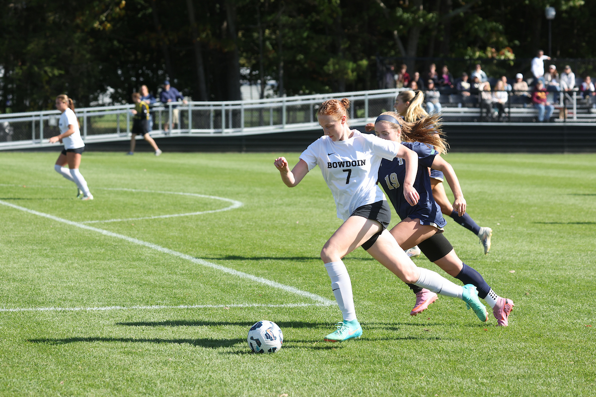 The women’s soccer team (8–3–0; 3–3–0 NESCAC) stunned ninth-ranked Middlebury College (9–1–2; 4–1–2 NESCAC) 2–1 on October 4, handing the Panthers their first loss of the season. Goals by Kayley Huleatt ’28 and Jackie Shores ’28 secured the win for the Polar Bears.