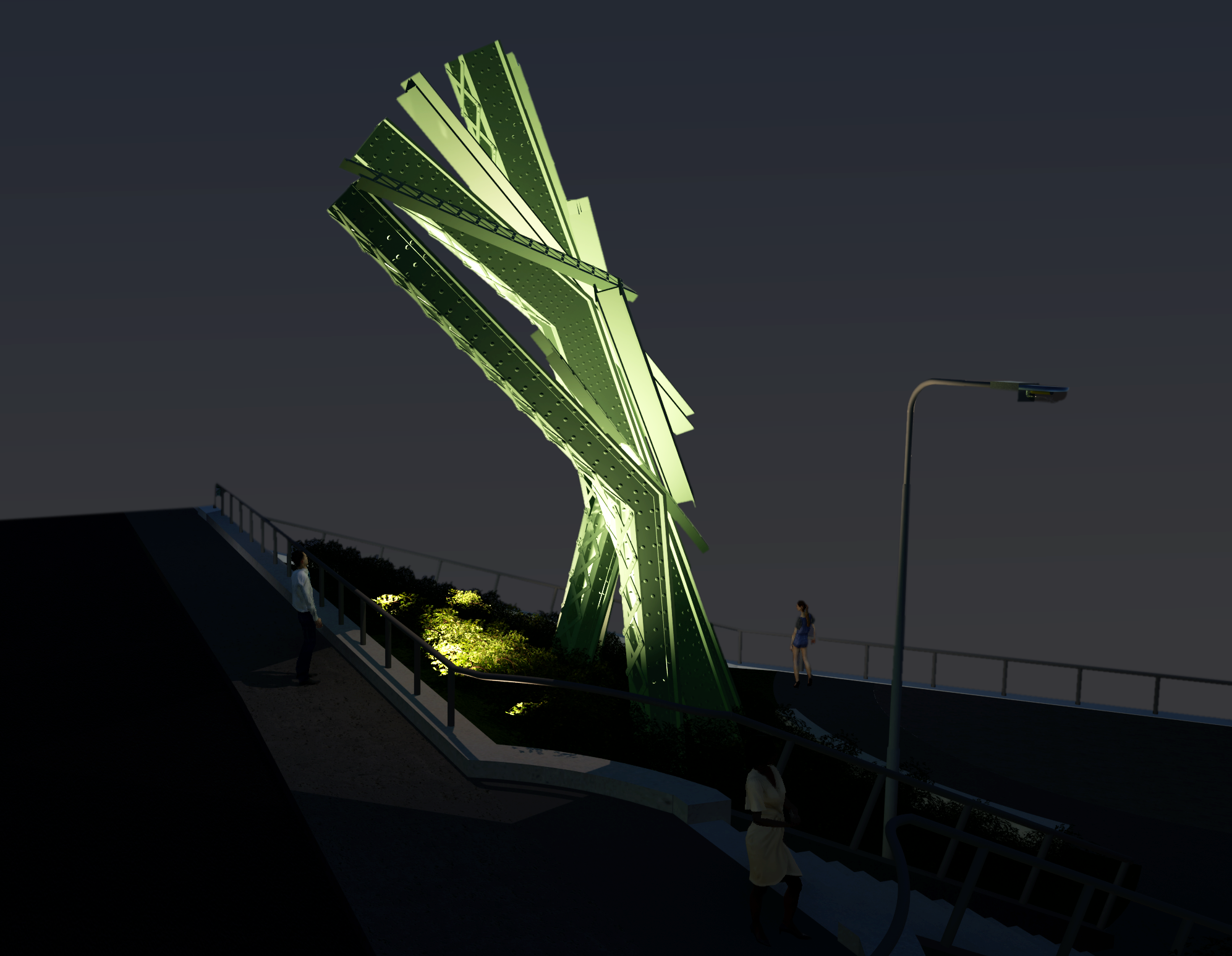 “After decades working in public art, we had never seen anything like that,” she wrote. “The [Frank J. Wood] Bridge art project is incredibly challenging in terms of handling and refurbishing the large parts, structural engineering and the logistics of incorporating not only the sculpture but its foundations and lighting into a new park.”