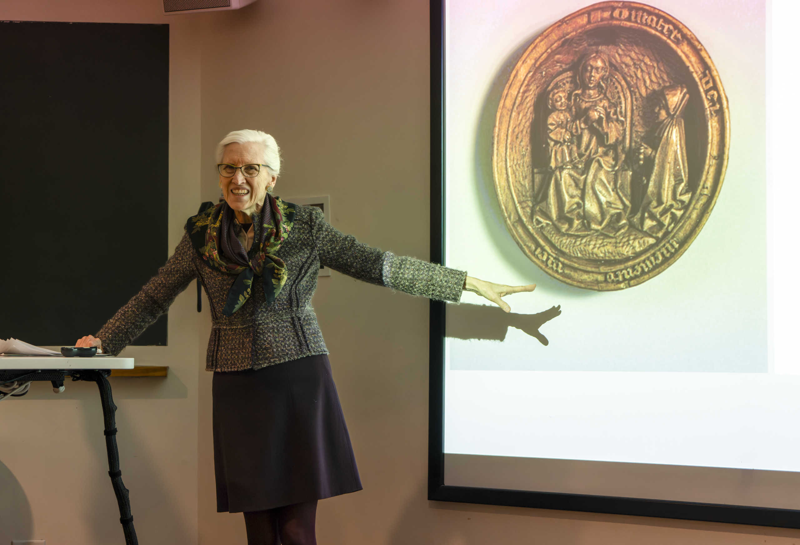 Boehm continued, addressing one of the main goals of her lecture: finding connections between her audience and the objects.