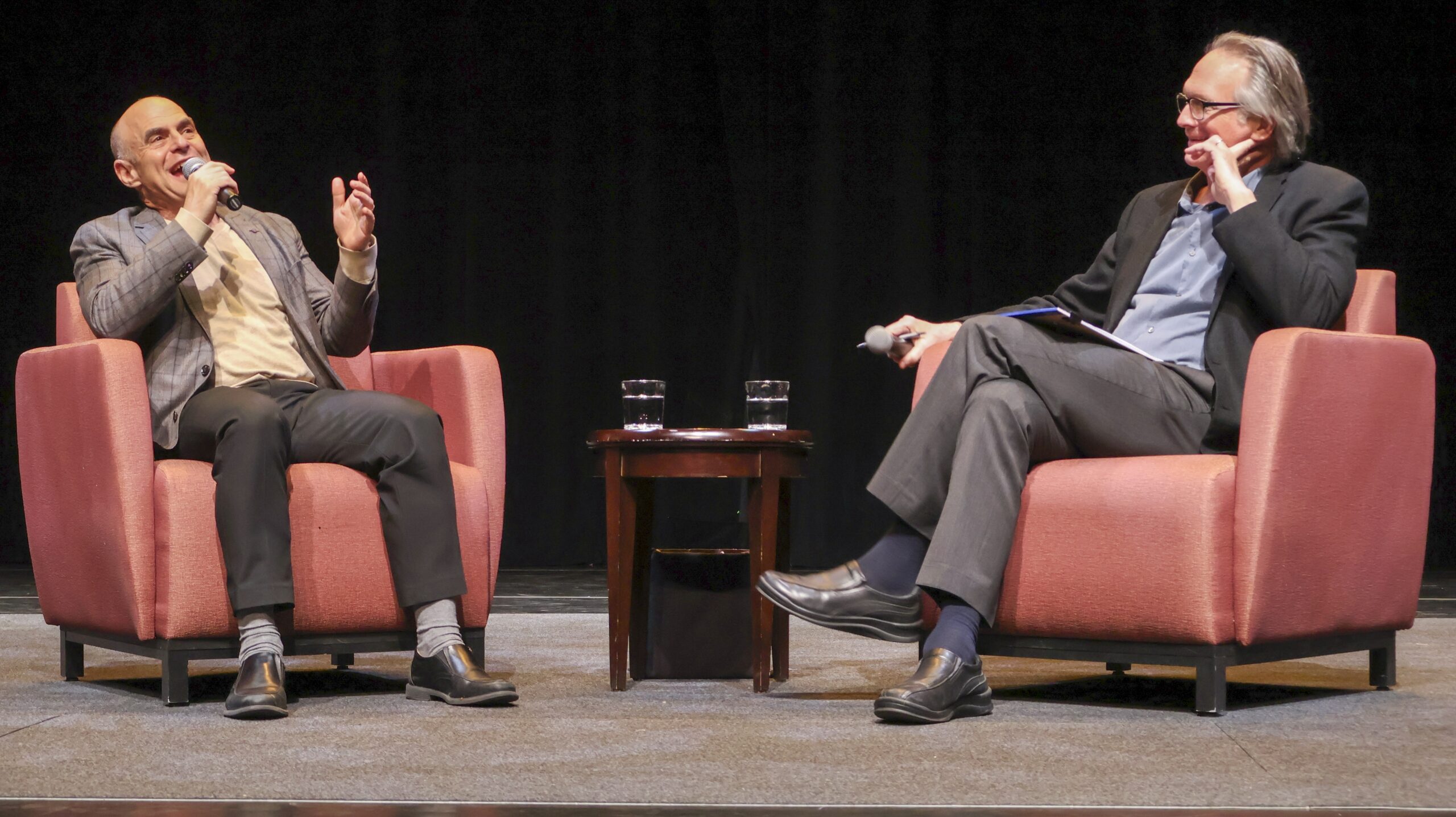 Abigail HebertLaughter filled Pickard Theater on Tuesday night as Peter Sagal, creator and host of NPR’s “Wait Wait… Don’t Tell Me!” spoke on political satire, news media and the U.S. Constitution for the final lecture in the Viewpoint Exchange speaker series for this academic year. Sagal was interviewed by Associate Dean of Curriculum and Professor of History Dallas Denery.