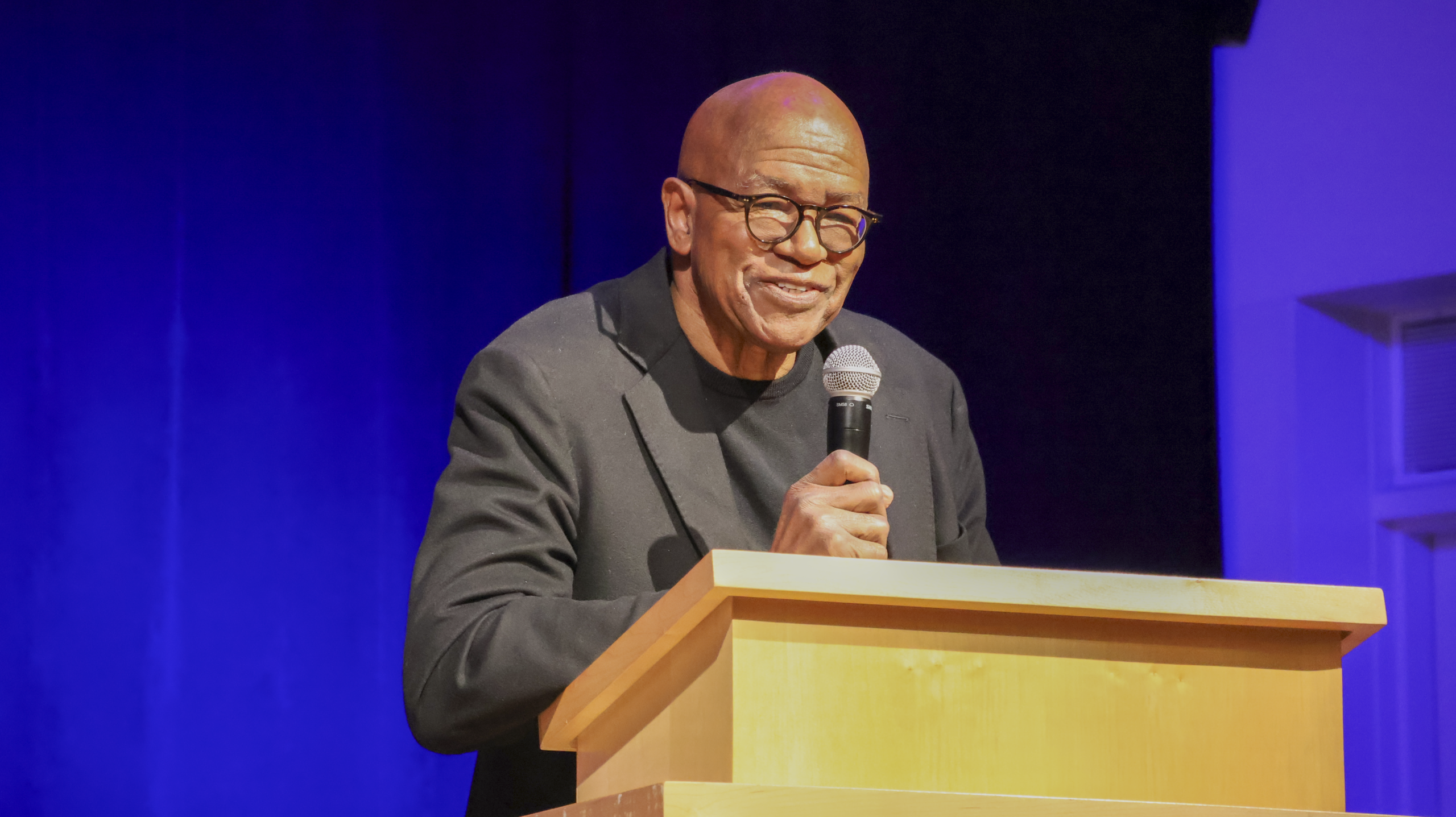 Abigail HebertDIVERSE DESTINATIONS: Phi Beta Kappa Visiting Scholar Elijah Anderson speaks in Kresge Auditorium on Wednesday evening. Anderson, a professor of sociology and Black studies at Yale University, presented the idea of a “cosmopolitan canopy,” where people from diverse backgrounds gather in an urban space.