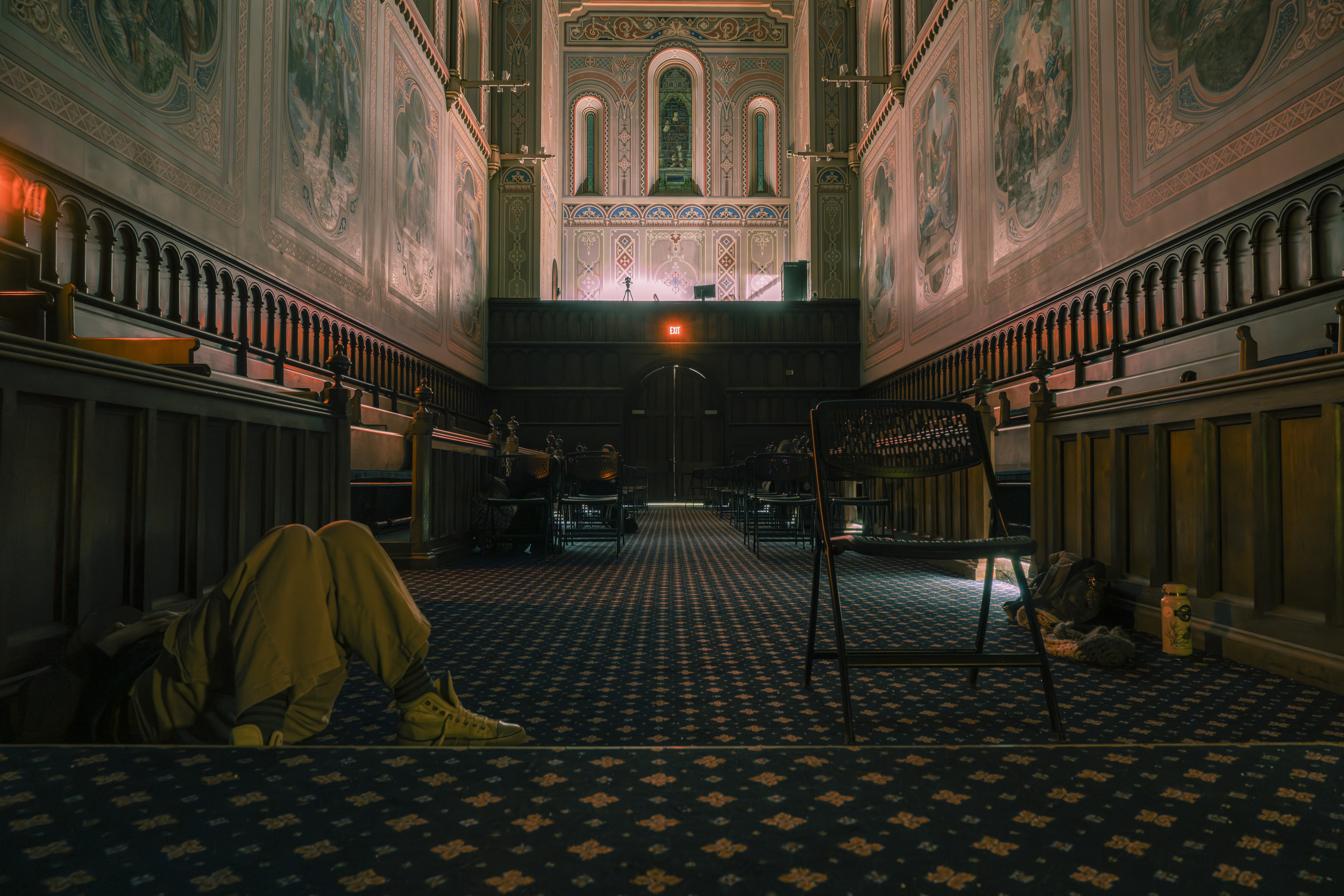 Andrew ShiSLOWING DOWN: Students unwind with Stillpoint program at the Bowdoin Chapel weekly on Tuesday nights. The program combines music, poetry and meditative silence to give attendees a moment for mindfulness in