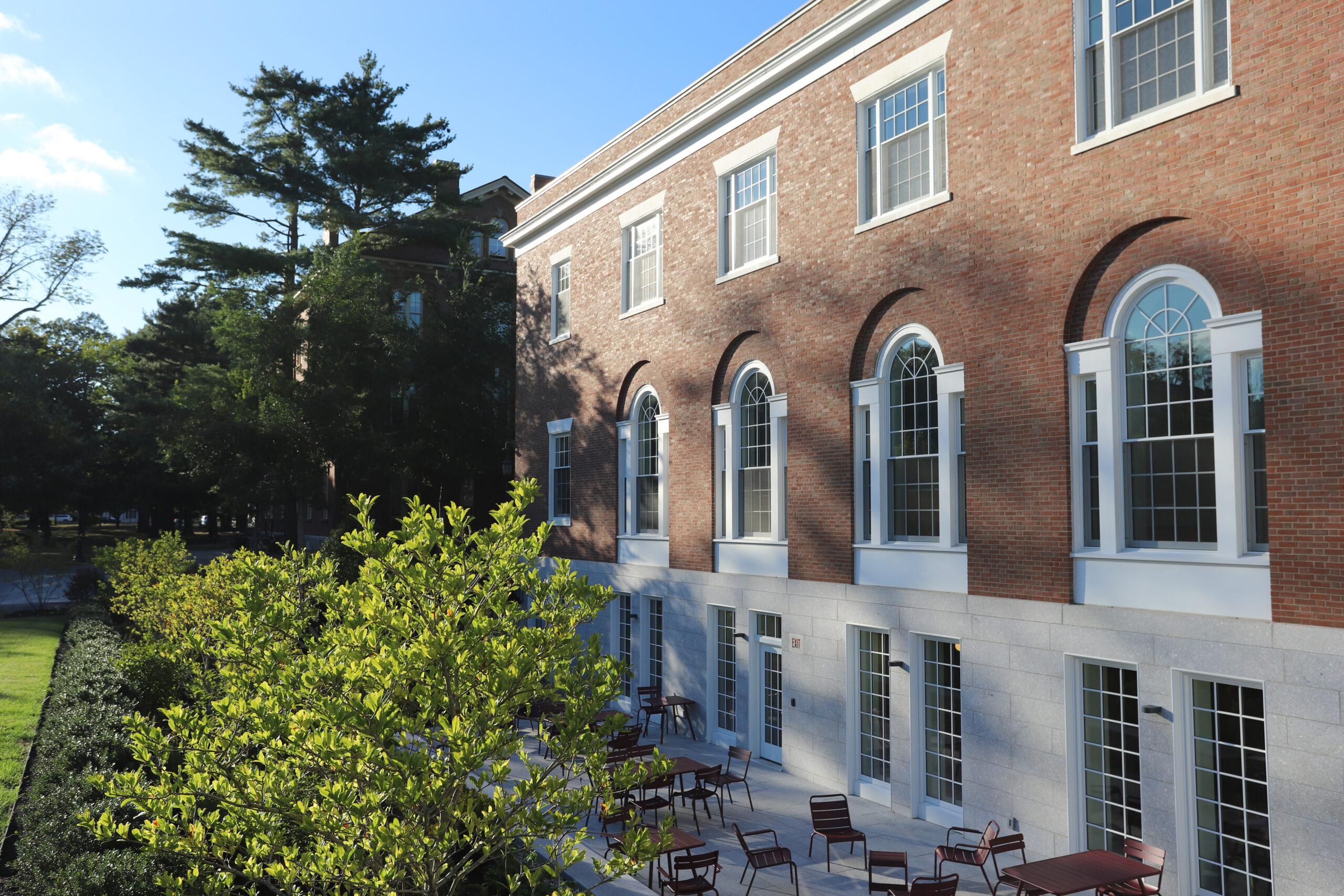 Kiran ElfenbeinGETTING (SILLS)Y: The newly-completed Sills Hall. After over a year of construction, the building is open for use, featuring a new recessed patio.