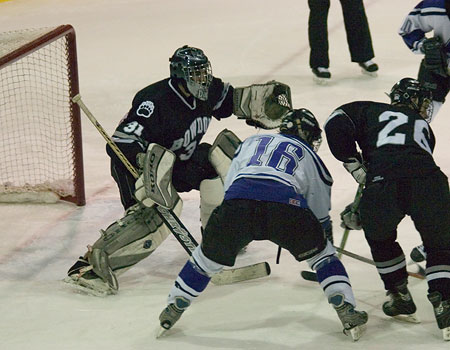 Senior George Papachristopoulos has played brilliantly for the Polar Bears this season as the starting goalie for the men's ice hockey team. The Quebec native has guided his team to an impressive 15 wins during the regular season and a crucial win over conference-foe Amherst in the NESCAC quarterfinal on Saturday at Dayton Arena.