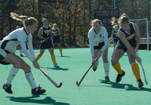 Saturday, in its last regular season home game, Bowdoin scored twice to beat Trinity (5-3 NESCAC) by a score of 2-0. Senior captain Burgess LePage opened up the scoring early on after sophomore Kate Gormley slipped her the ball. Following her lead, McNamara scored off a pass from Hillary Hoffman a minute later.