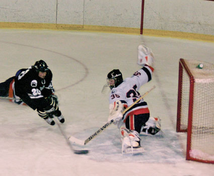 The Huskies responded with two sharp and forceful goals in the space of three minutes before the close of the second period to silence the Dayton faithful. The two top-caliber teams proceeded to play out a stalemate until Matt Lentini '09 scored the game winner on a brilliant cross-ice pass from the spinning Mike Corbelle '10.