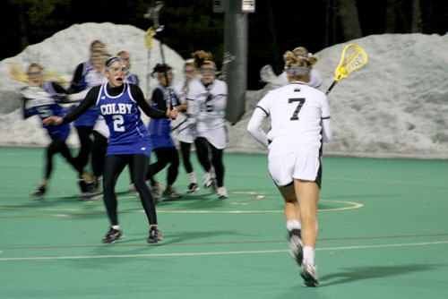 After a Liz Clegg '12 goal, the Bears closed the gap to 11-9 as the second half began. Unfortunately, that would be as close as Bowdoin would get, as the Mules pulled away, scoring five consecutive goals to extend their advantage to 16-9 en route to a 17-10 victory.