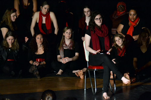 For the first time in a Bowdoin production of The Vagina Monologues, the show is introduced with a monologue that details personal stories of Bowdoin students, collected by student group SPEAK.
