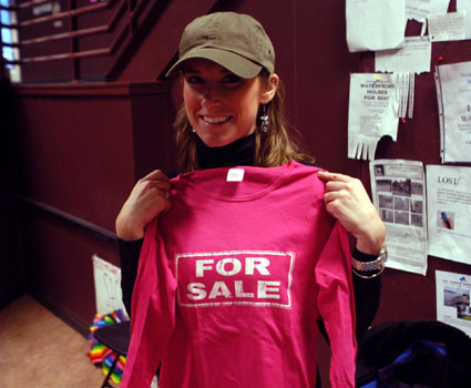 Perhaps the most enticing quality of the shirts is their shock value. At Price's Bowdoin trunk-show, both she and her mom attested to the wide range of reactions they've seen to the tees. Price told the story of one woman who walked into a Portland bar wearing the "For Sale" shirt. Immediately, a man at the bar stood up and yelled, "Sold!"