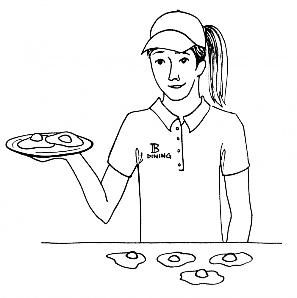 Four years ago, I started my career in the Moulton kitchen cutting potatoes (so many home fries). But I love cooking and wanted to do something a little more exciting, so one day I transitioned to making eggs.